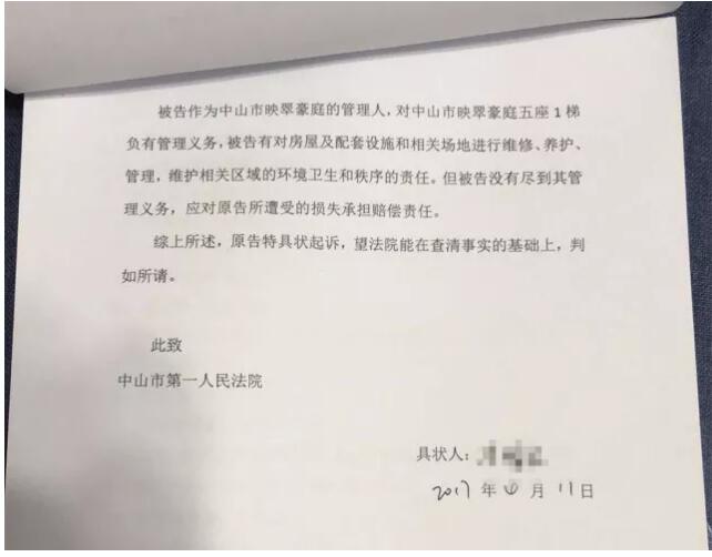 据原告冯先生状告物业公司的“民事起诉状”描述: