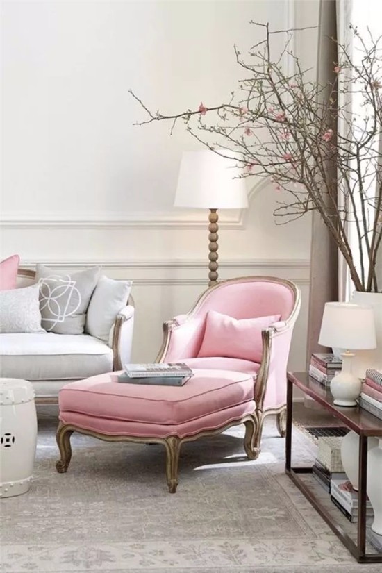 粉色代表着小公主、少女心?这太片面了,粉色是一个非常时尚积极的色彩,它典雅而温馨,充满着浪漫的想象。高级灰是极具质感的颜色,聪明使用灰色会让你的家充满精致、温馨的感觉。